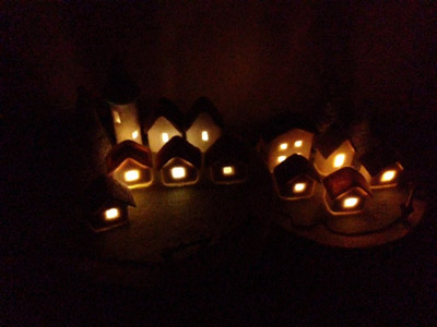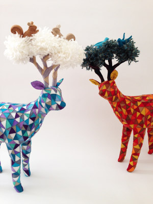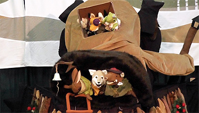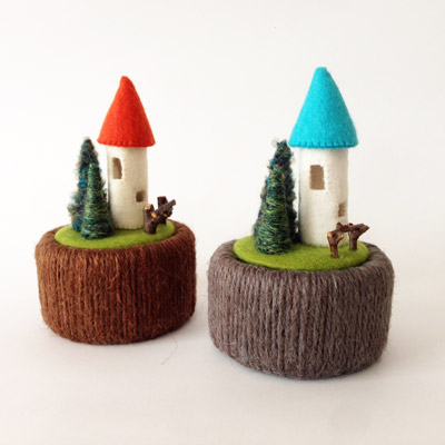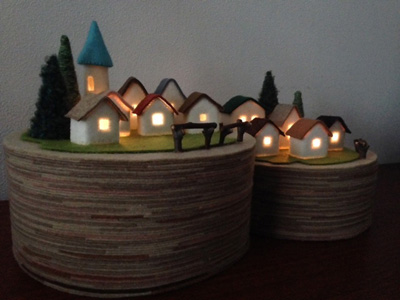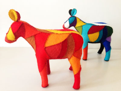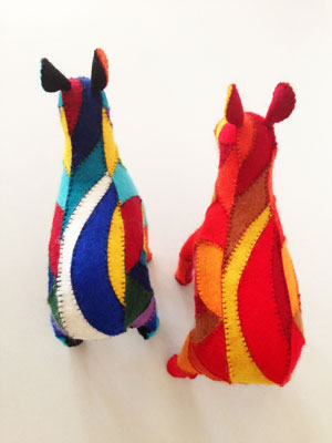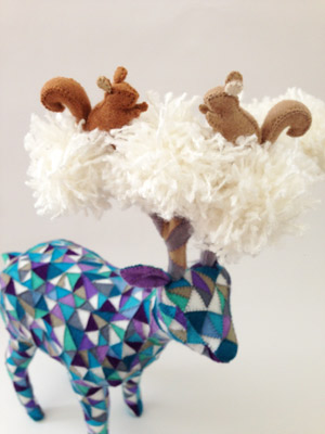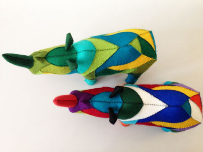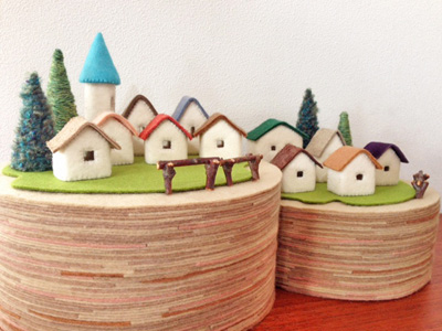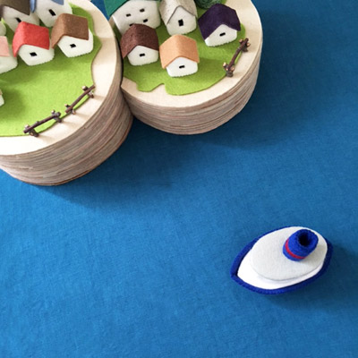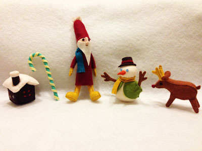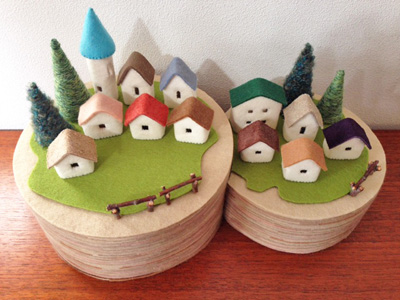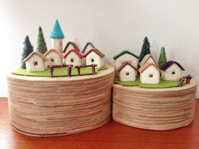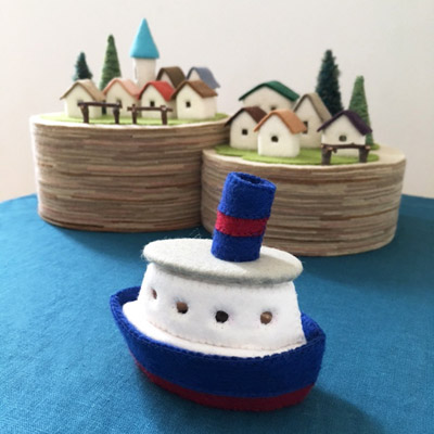 マスコットサイズの小さなものから、人形劇のパペット人形やそのセットなども主に布などで制作しています。